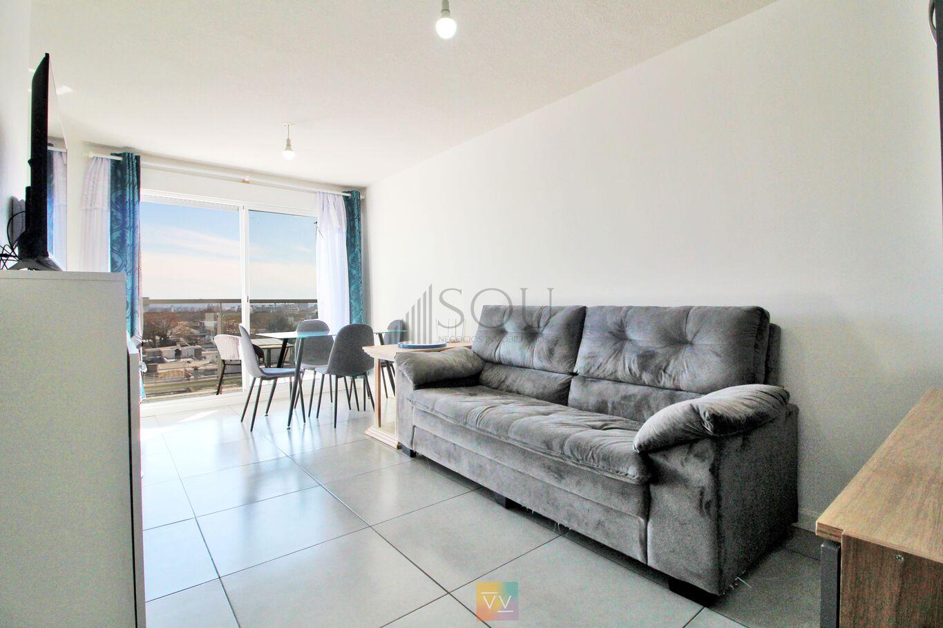 Living comedor amplio con salida a balcón que da al frente con vista muy despejada.